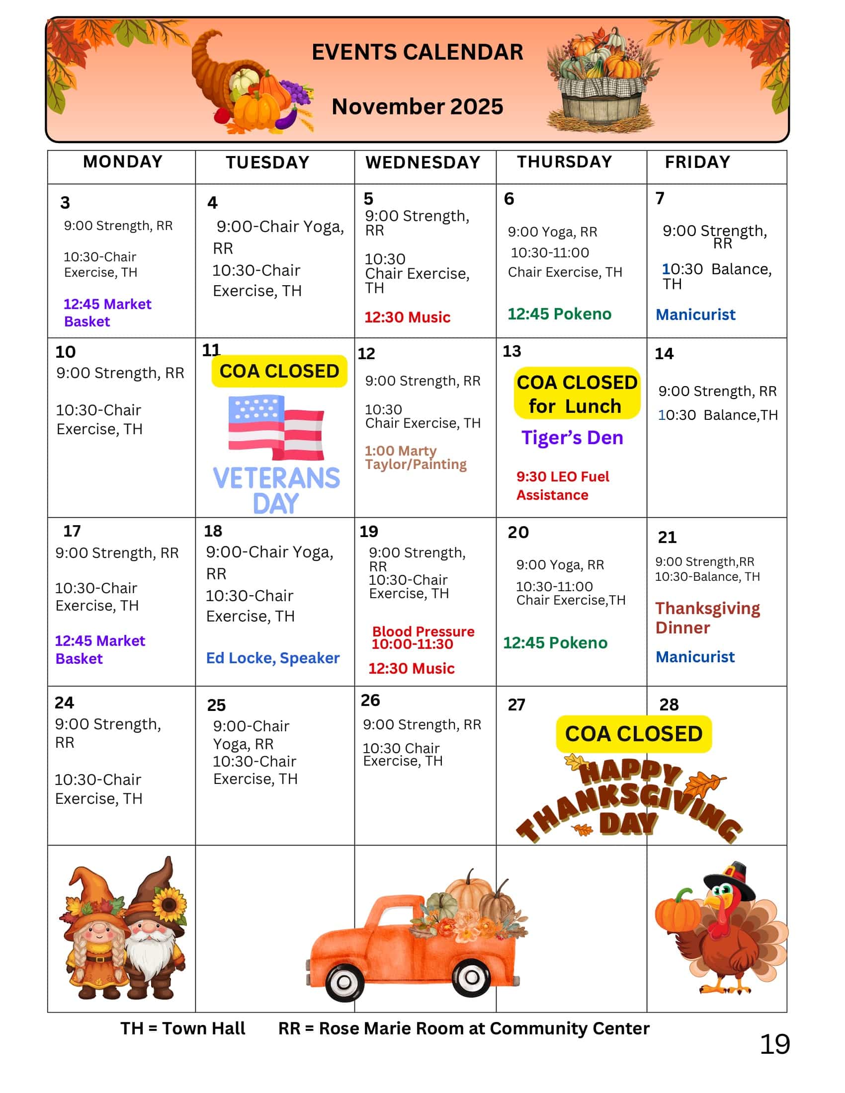 There are 2 chair classes at the Tiffany Room, Monday & Friday, that is not leader lead. We use a variety of You Tube videos geared to seniors. Free.